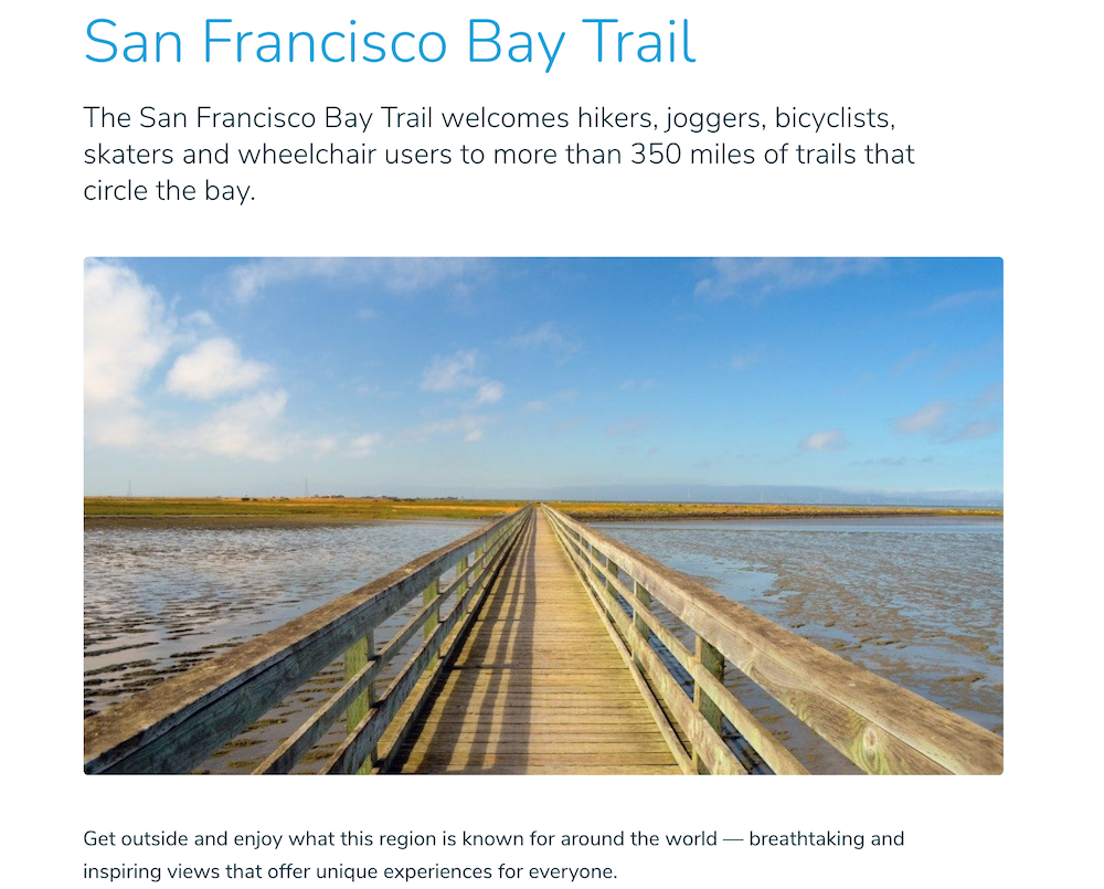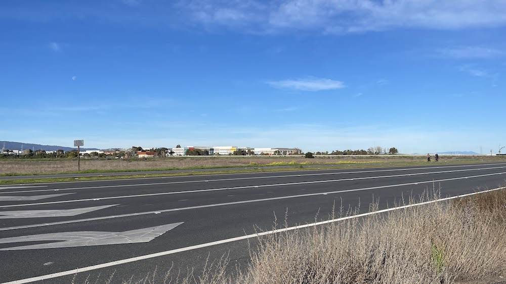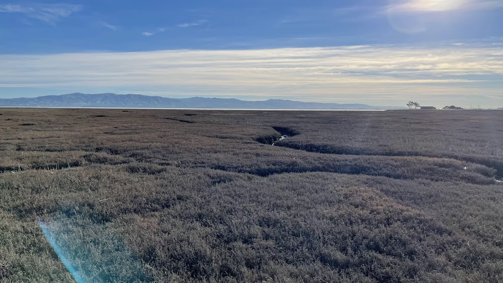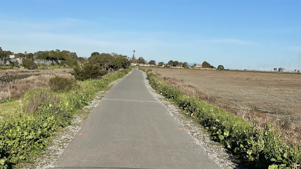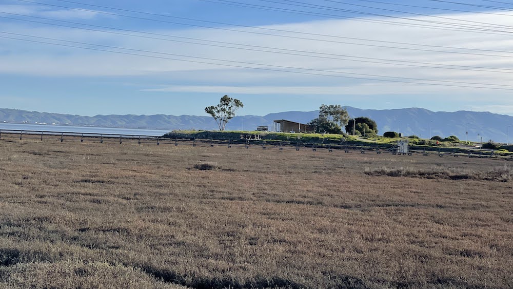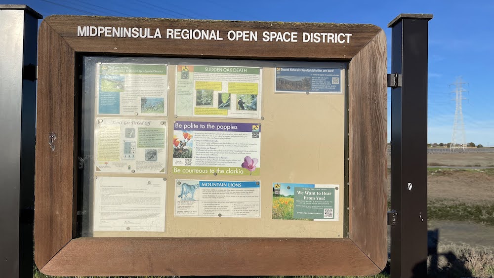 The trail is on the San Francisco Bay Trail to more than 350 miles of trails that circle the bay at East Palo Alto area. The trail come and back between the Cooley Landing and Facebook Head Quarter, approximately 6 miles. The trail is surrounded by the Don Edwards San Francisco Bay National Wildlife Refuge's Ravenswood Ponds.