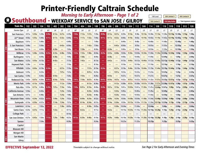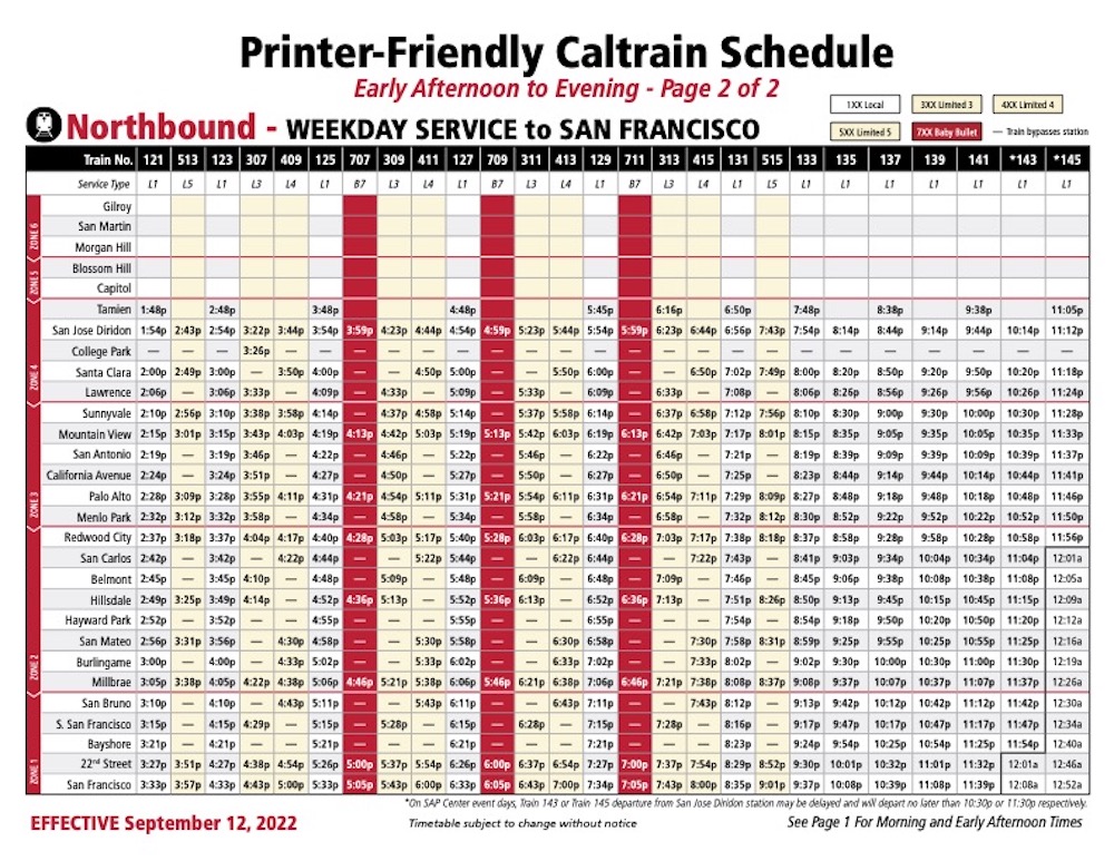 Caltrain (reporting mark JPBX) is a California commuter rail line serving the San Francisco Peninsula and Santa Clara Valley (Silicon Valley). The southern terminus is in San Jose at Tamien station with weekday rush hour service running as far as Gilroy. The northern terminus of the line is in San Francisco at 4th and King Streets. Caltrain has 28 regular stops, one limited-service weekday-only stop (College Park), one weekend-only stop (Broadway), and one football-only stop (Stanford). While average weekday ridership in 2019 exceeded 63,000, impacts of the COVID-19 pandemic have been significant: in August 2022, Caltrain had an average weekday ridership of 18,600 passengers.