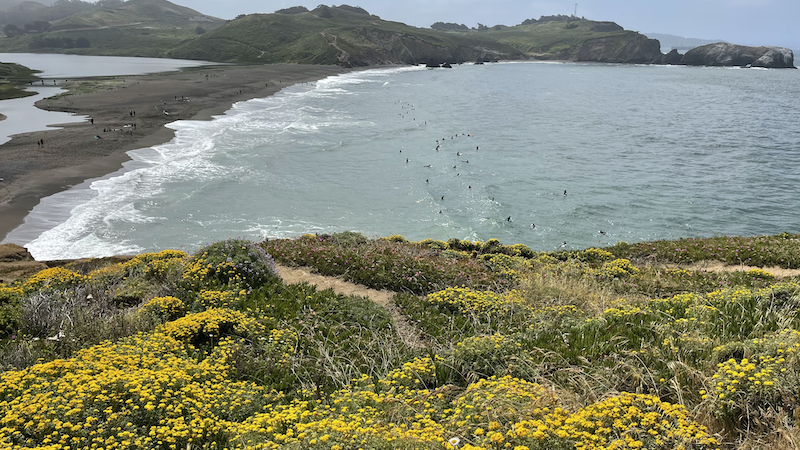 Consider stopping off at Rodeo Beach after your hike. We love this beach, and can spend a long time enjoying the ocean views and watching surfers catch waves in Rodeo Cove.